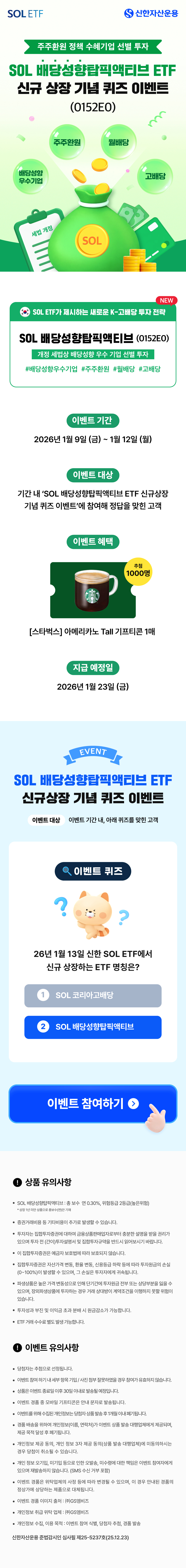 [SOL ETF] SOL 배당성향탑픽액티브 신규상장 퀴즈이벤트 | SOL 배당성향탑픽액티브 신규상장 (0152E0)